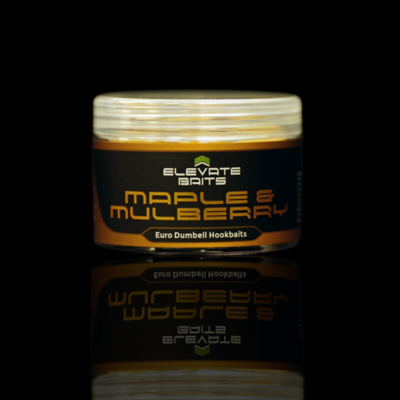 The Maple and Mulberry dumbell hookbaits are hardened hookbait to eliminate damage from nuisance fish and bird life. They have been made using the same ingredients as the ever-popular Maple and Mulberry boilie, which is a mix of milk proteins and bird foods, we use liquid and powder attractors which are highly digestible and super nutrional which will be effective all year round due to its low oil content.